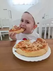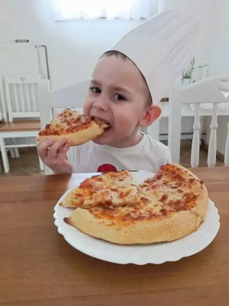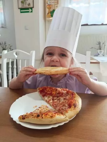 Po upieczeniu dzieci przystąpiły do degustacji. Wszystkie wypieki wyszły doskonale. Maluszki jadły z wielkim apetytem przygotowane przez siebie pizze.