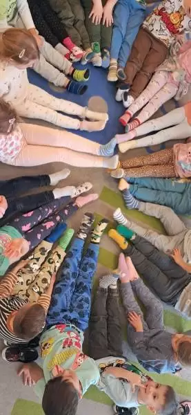 Wszystko to miało na celu nie tylko świętowanie nowej pory roku, ale także rozwijanie kreatywności dzieci oraz budowanie pozytywnych wspomnień związanych z przyrodą. Nie zapomnieliśmy również o Dniu Zespołu Downa, inaczej nazywanym Dniem Kolorowej Skarpetki. Kolorowe skarpetki nie do pary są uznawane za symbol niedopasowania społecznego i genotypowego z jakim borykają się osoby z trisomią 21 chromosomu. Z tej okazji Przedszkolaki ubrały skarpetki w różnych kolorach i wzorach.