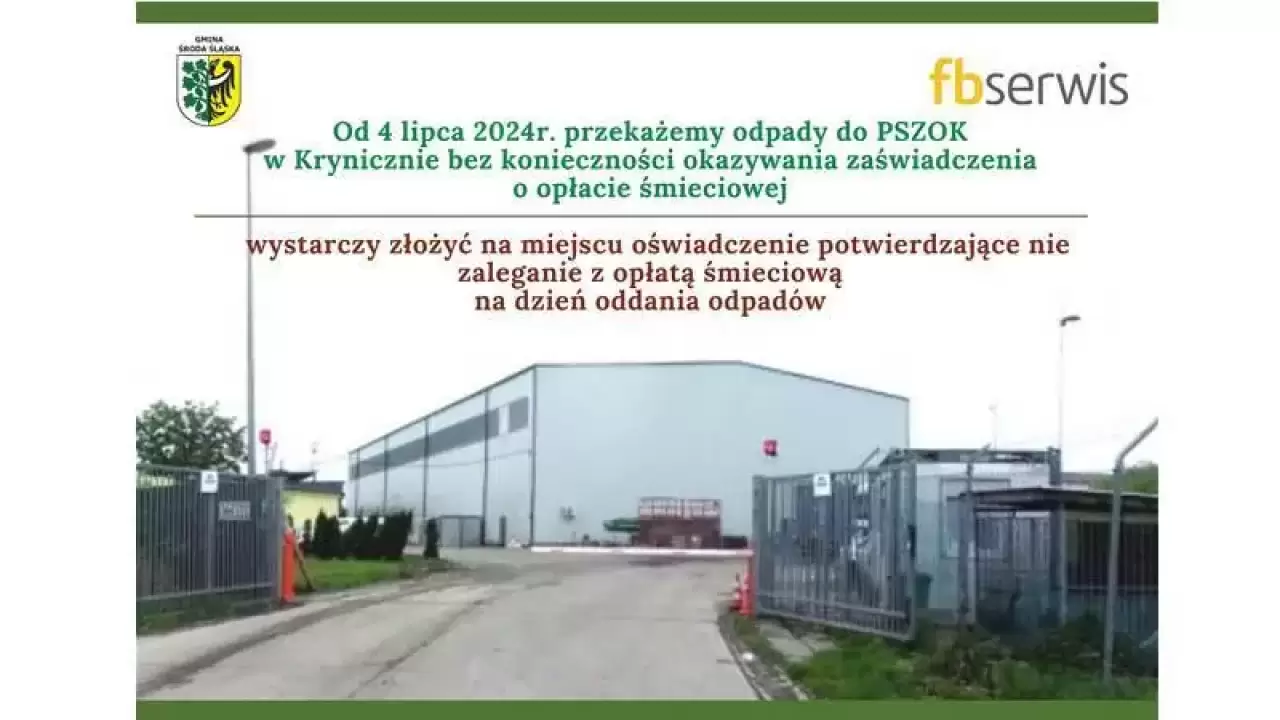 Od 4 lipca 2024 r. przekażemy odpady do PSZOK w Krynicznie bez konieczności okazywania zaświadczenia o opłacie śmieciowej.