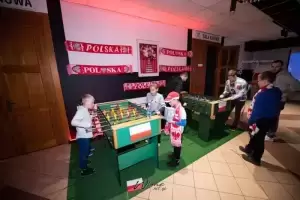 Na każdego przybyłego kibica w foyer czekało studio meczowe, konkursy z nagrodami, strefa gier: piłkarzyki stołowe, Xbox oraz strefa gastro od Catering Merkury, który serwował nam prawdziwie piłkarskie napoje i przekąski w atrakcyjnych cenach.
