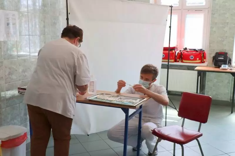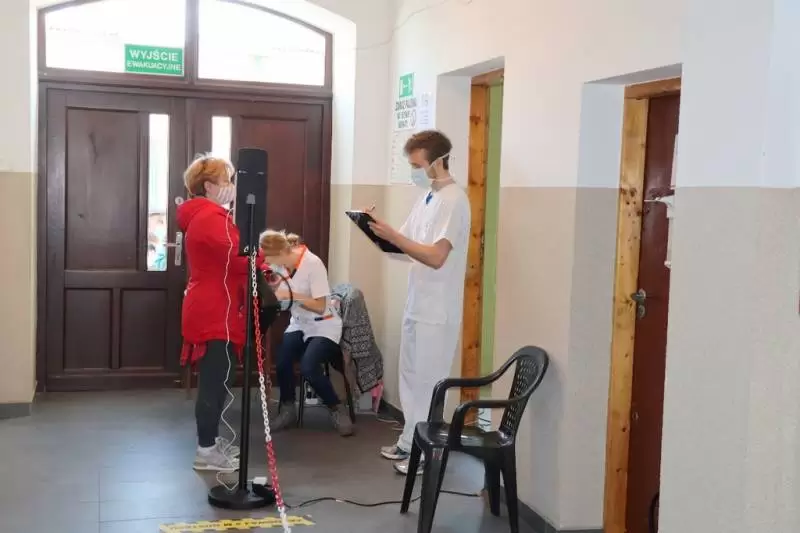 Pacjenci przychodzili do punktu z wypełnioną już ankietą, bądź wypełniali ją tuż przed szczepieniem. Po wywiadzie z lekarzem kierowani byli do kolejnego pomieszczenia, gdzie od wykwalifikowanej pielęgniarki otrzymywali szczepionkę. Następnie, pacjenci kierowani byli do stanowiska zaaranżowanego na hali sportowej, gdzie przez 15 minut odpoczywali po szczepieniu, zapoznając się przy okazji z plakatami informującymi o tym, jakich zasad przestrzegać zaraz po szczepieniu.