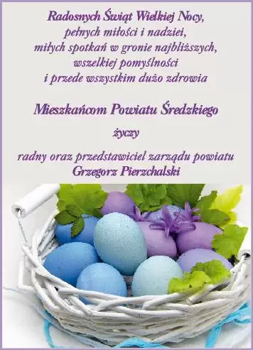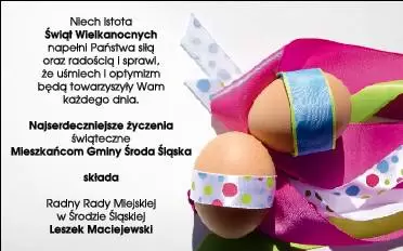 Z okazji Świąt Wielkiej Nocy życzenia składają radni: Zdzisław Kruszelnicki, Leszek Maciejewski, Grzegorz Pierzchalski i Daniel Uszyński.