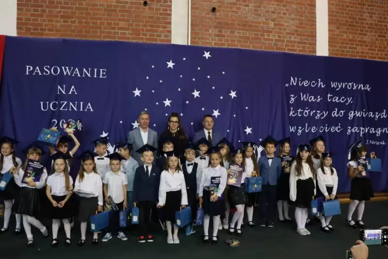 - Pasowanie na pierwszoklasistę to wyjątkowa uroczystością, podczas której przechodzicie przez symboliczną bramkę do świata szkolnego. To także moment, w którym rodzice oddają Was pod opiekę szkoły. Życzę Wam drogie dzieci samych sukcesów, niech starsi koledzy służą Wam pomocą, a lata spędzone w szkole niech będą wspaniałą, edukacyjną przygodą – życzył burmistrz Adam Ruciński