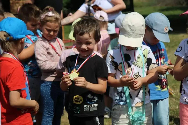 Na zakończenie zawodów każdy z przedszkolaków otrzymał złoty medal.