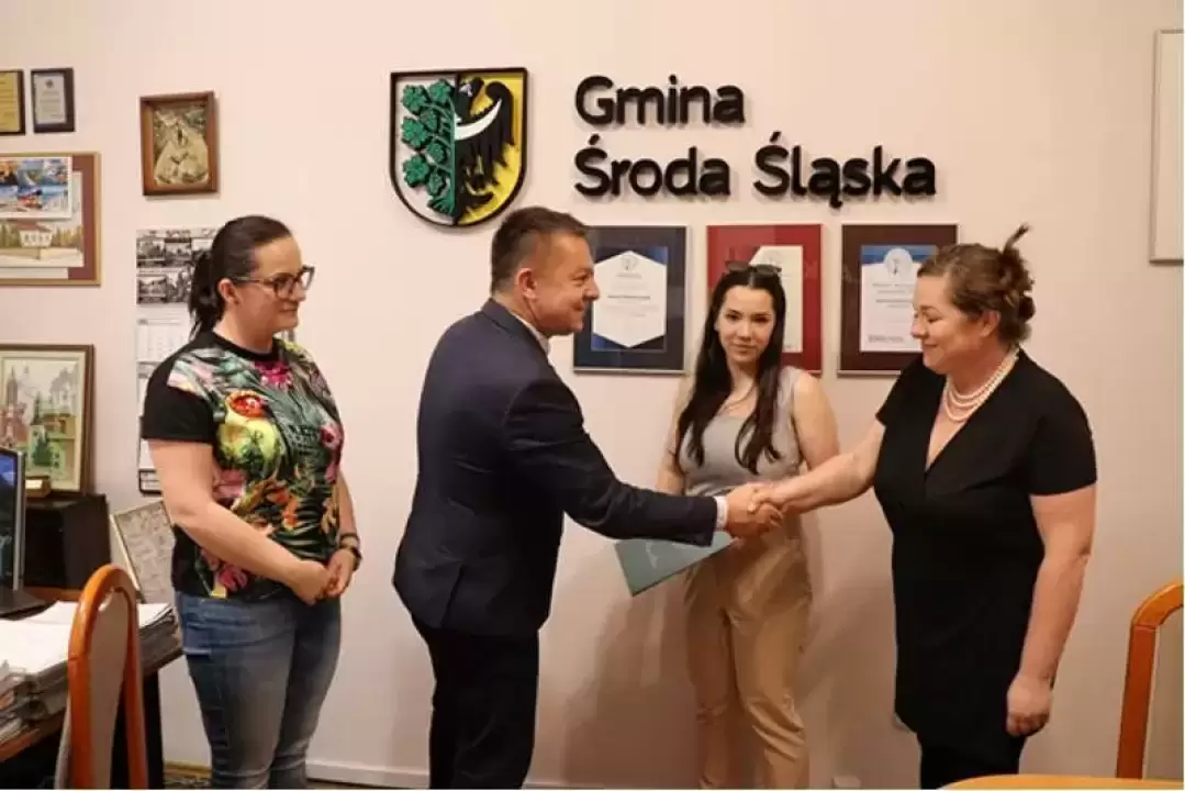 W ubiegłym tygodniu burmistrz Adam Ruciński zawarł z przedstawicielkami Zarządu Uczniowskiego Klubu Sportowego „Skarby” Rozalią Kogutek i Agnieszką Kogutek umowę na dofinansowanie z budżetu Gminy turnusu półkolonii sportowych organizowanych dla dzieci ze Środy Śląskiej i okolicznych wsi.