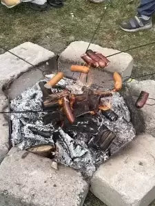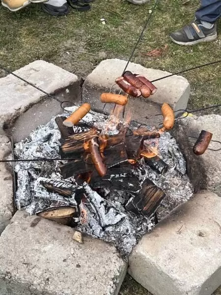 Po emocjonującym marszu na uczestników czekała dodatkowa niespodzianka – wspólne ognisko i pieczone kiełbaski! Zapach dymu, ciepło płomieni i radosne rozmowy sprawiły, że finał imprezy był pełen przyjacielskiej atmosfery. To idealne zakończenie aktywnego dnia, pozwalające na chwilę odpoczynku i wymianę wrażeń.