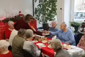 Podopieczni Dziennego Domu Senior + zebrali się przy stole, pełnym dekoracji świątecznych. Każdy z nich miał możliwość podzielenia się swoimi wspomnieniami i opowiedzenia historii ze swojej młodości. Były wzruszenia, ale także wiele radości i śmiechu. Śpiewali kolędy i rozmawiali o pięknych świątecznych tradycjach.