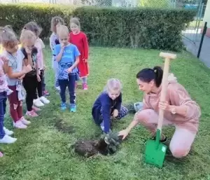 Dzieci z Przedszkola Publicznego nr 1 w Środzie Śląskiej wzięły dziś udział w akcji #sadziMY zainicjowanej przez Prezydenta Rzeczypospolitej Polskiej Andrzeja Dudę.