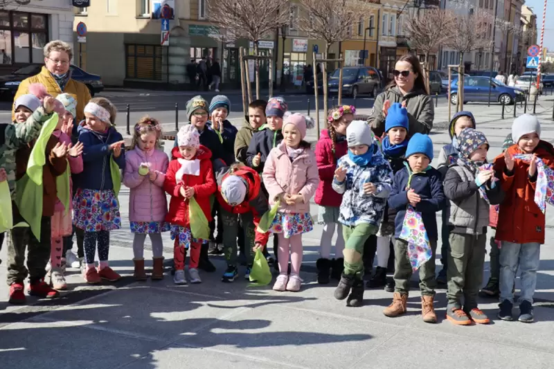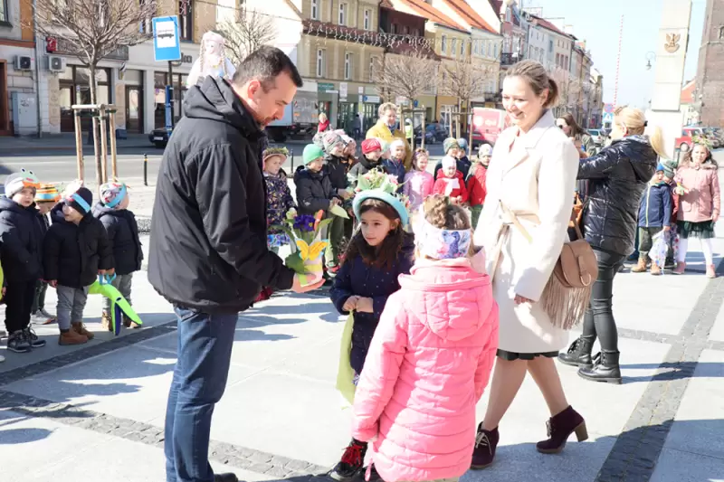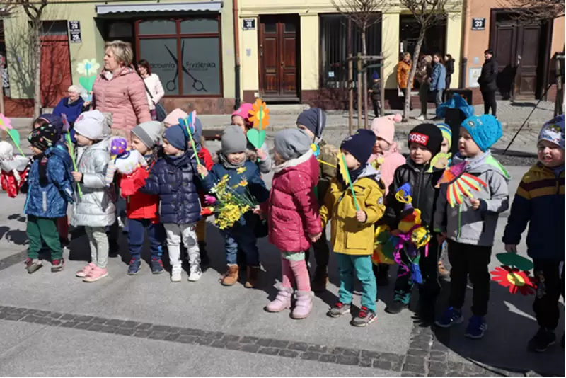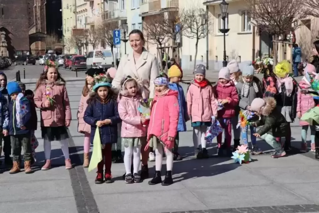 W pierwszy dzień wiosny z wizytą na Rynek Dolny przyszły przedszkolaki z Przedszkola nr 3 w Środzie Śląskiej. Zaśpiewały piosenkę o wiośnie i przyniosły prezent symbolizujący nadejście nowej pory roku.