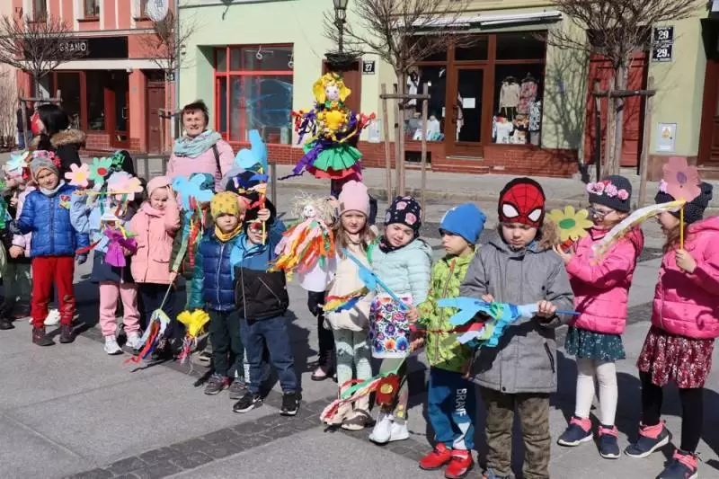 Dzieci miały ze sobą kukiełki z wizerunkiem „Pani Wiosny” oraz Marzanny, symbol kończącej się zimy. Przedszkolaki zaprezentowały wierszyki i piosenki o wiośnie. Sekretarz Gminy Marcin Nowakowski w imieniu burmistrza odebrał z rąk dzieci upominek z okazji powitania wiosny w postaci wiosennego kwiatu.