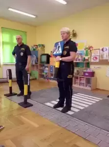 Podczas kilku spotkań, które miały miejsce w przeciągu paru dni pracownicy straży miejskiej odwiedzili wszystkie grupy i przekazali dzieciakom wiele cennych informacji. Pogadanki, które dotyczyły zachowania na jezdni bardzo się wszystkim podobały.
