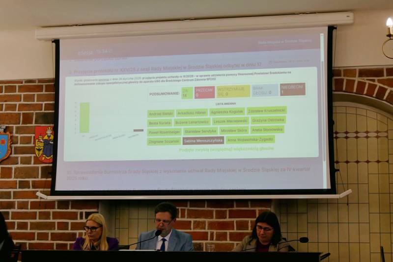 Następnie radni zajęli się projektami uchwał i podjęli łącznie 8 uchwał, m.in. w sprawach wieloletniej prognozy finansowej, planowania przestrzennego oraz programu osłonowego „Korpus Wsparcia Seniorów”. Jedną z najważniejszych decyzji było udzielenie wsparcia finansowego dla Powiatu Średzkiego na zakup specjalistycznej głowicy do aparatu USG dla Średzkiego Centrum Zdrowia SPZOZ. Radni wyrazili poparcie dla tej inicjatywy, podkreślając jej znaczenie dla poprawy dostępu do diagnostyki dla mieszkańców.