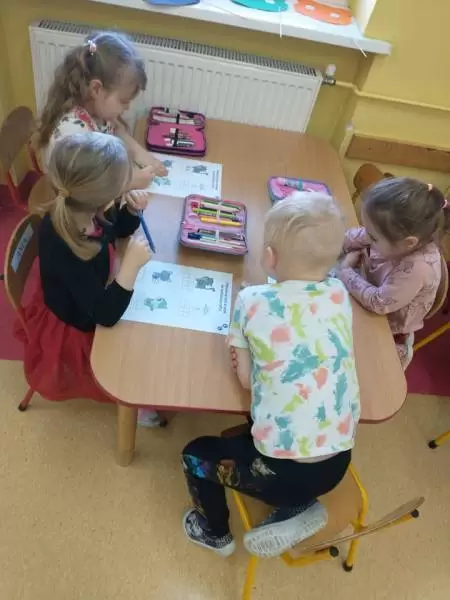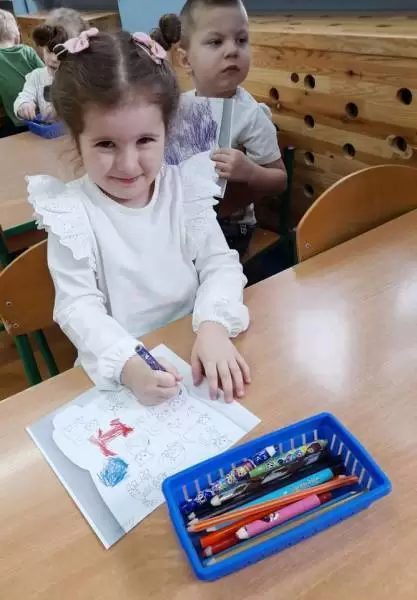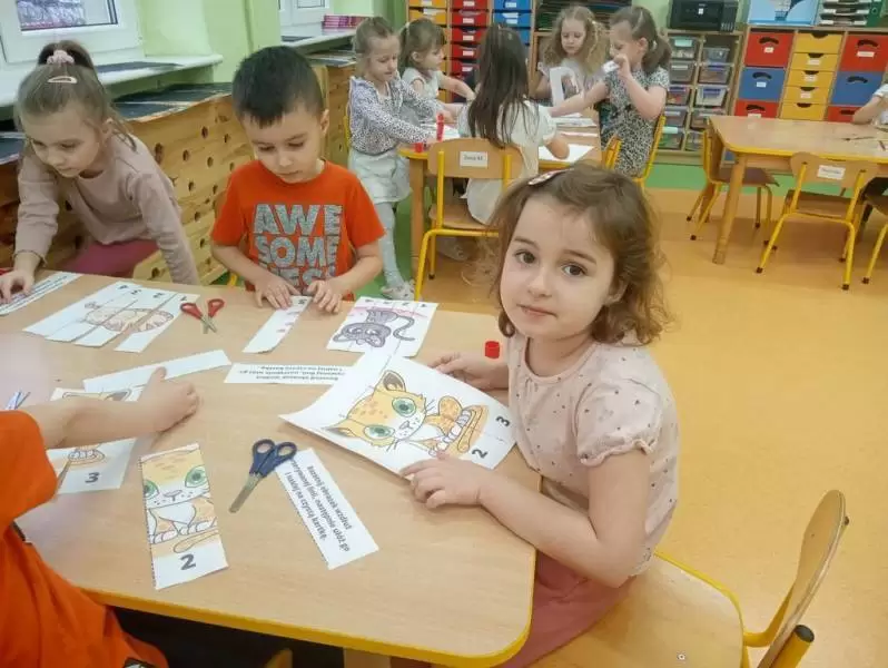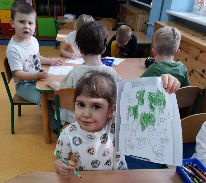 Były też wesołe „kocie zabawy”, takie jak: koci spacerek, rozwiązywanie zagadek, wykonywanie różnorodnych prac plastycznych, recytowanie wierszy i śpiewanie kocich piosenek.