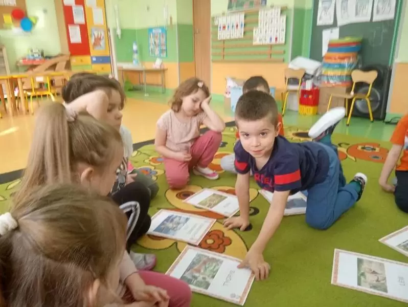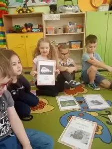 Następnie dzieci wysłuchały opowiadania o chorym kotku, a później uczyły się w jaki sposób opiekować się tymi zwierzętami, oglądały książeczki, zapoznawały się z kocimi obyczajami oraz sposobami pielęgnacji kotów.