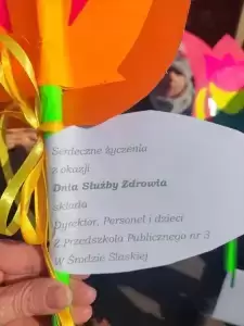 Tego dnia dziękujemy pracownikom służb medycznych za opiekę nad nami. Przedszkolaki z Przedszkola Publicznego nr 3 w Środzie Śląskiej, wraz z panią dyrektor i nauczycielami odwiedziły przychodnię Puls i Greta-Dent z serdecznymi życzeniami.