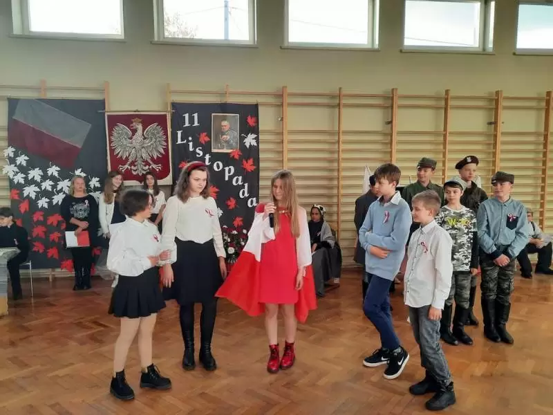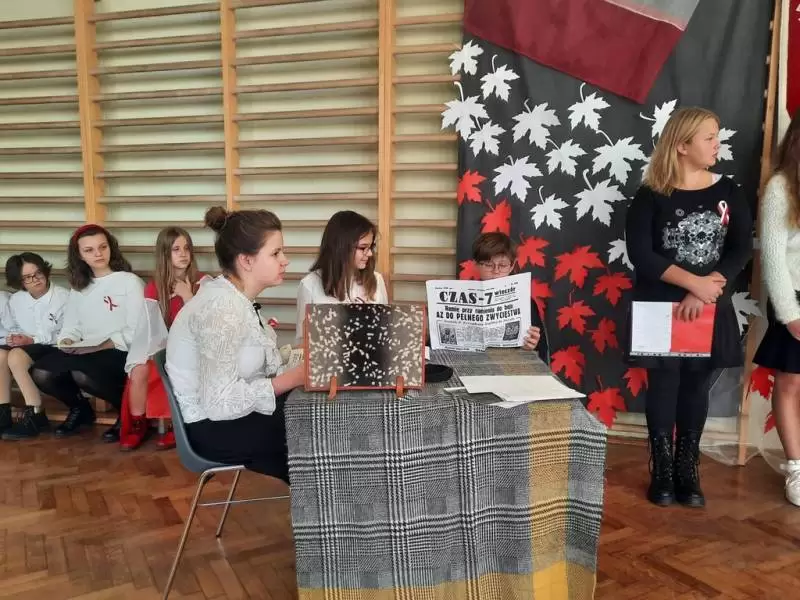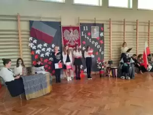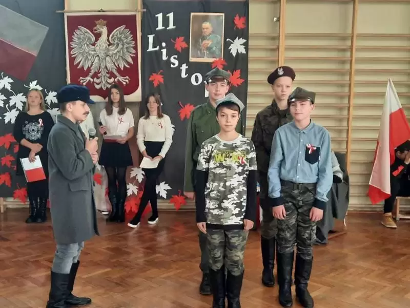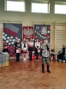 Stacjonujące przy ul. Kościuszki klasy siódme i ósme oraz klasa 6c wzięły udział w związanym tematycznie ze Świętem Odzyskania Niepodległości konkursie, który składał się z pięciu konkurencji. Każda klasa miała za zadanie: zrobić w swojej sali gazetkę poświęconą odzyskaniu przez Polskę niepodległości, ułożyć z puzzli w określonym czasie mapę II Rzeczpospolitej, pokolorować godło Polski, odgadnąć na podstawie zdjęć imiona i nazwiska sławnych Polaków z tego okresu oraz rozwiązać krzyżówkę. Zdobyte przez klasy punkty stały się podstawą do zdobycia określonych miejsc. Konkurs prowadzili oraz oceniali członkowie szkolnego koła historycznego, prowadzonego przez głównego organizatora tego konkursu, p. Alicję Przesławską. Zwycięskie klasy otrzymały pamiątkowe dyplomy.