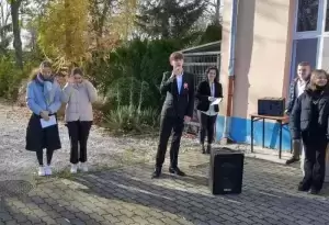 Odbyły się dwa uroczyste apele szkolne, w których ze względów bezpieczeństwa w związku z epidemią COVID - 19 uczestniczyły klasy w małych grupach. Rozsadzeni w osobnych sektorach uczniowie klas I – III obejrzeli apel przygotowany przez klasy 1e i 2b, które do występu przygotowały panie Barbara Glazer i Małgorzata Musiał. Przedstawienie słowno-muzyczne dla uczniów klas IV-VI przygotowały nauczycielki – p. Katarzyna Szybiak i p. Marzena Marcinkowska przy współpracy z p. Adamem Gackiem akompaniującym podczas wykonywania pieśni patriotycznych, których uczniowie nauczyli się w czasie zajęć muzycznych z p. Maciejem Lenckowskim. W przedstawieniu wzięli udział uczniowie klas 6a i 6b: Lena Owczarska, Sara Czajkowska, Natalia Kuzio, Oliver Zieliński, Hanna Żemojcin, Kinga Mołczan, Emilia Sznajder, Tymon Gleń, Bartosz Kasprzyk, Natalia Krzyształowicz, Aleksandra Pająk, Sławomir Masełek, Mateusz Wrzyszcz, Bartłomiej Suszycki, Bartłomiej Rutkowski, Ksawery Lizak, Hanna Suszycka, Katarzyna Rubin, Marcel Korman.