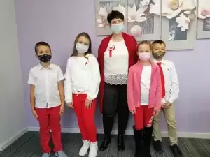 W ramach obchodów Święta Niepodległości 10 listopada uczniowie wzięli też czynny udział w akcjach ogłoszonych przez Samorząd Uczniowski: “#Szkoła do hymnu” i “Dzień biało-czerwony”. O godzinie 11.11. uroczyście odśpiewano “Mazurka Dąbrowskiego”. Ze względu na zagrożenie epidemiczne uczniowie uczący się w budynku przy ulicy Górnej zaśpiewali w swoich salach lekcyjnych. Przy ulicy Kościuszki akcja “#Szkoła do hymnu” rozegrała się przed budynkiem szkoły. Większość uczniów przyszła ubrana na biało-czerwono, podkreślając w ten sposób swój szacunek do barw narodowych. W ostatnim tygodniu we wszystkich klasach w trakcie zajęć poruszana była tematyka dotycząca symboli narodowych oraz odzyskania przez naszą Ojczyznę niepodległości.
