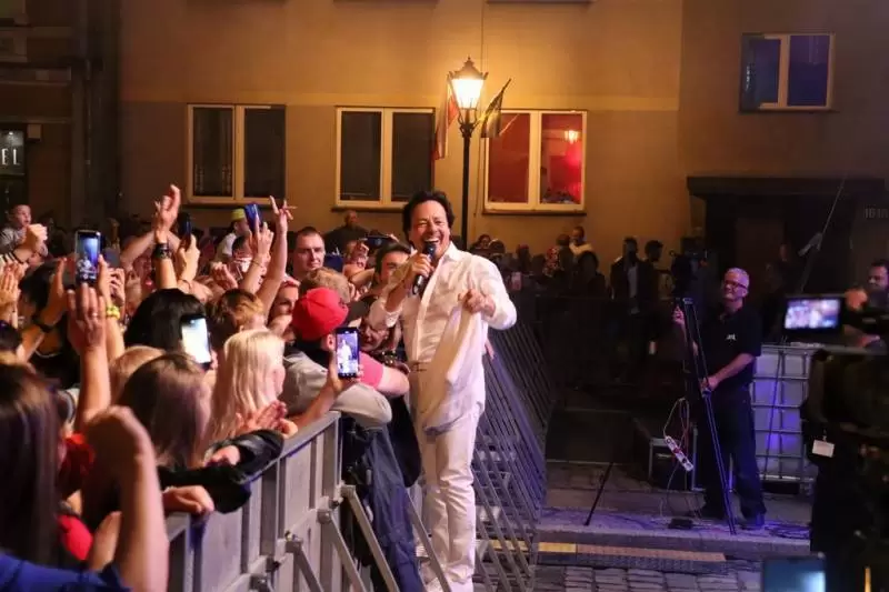 Wieczorem średzką sceną na Runku Dolnym zawładnęli zaproszeni polscy i zagraniczni artyści. Do wspólnego śpiewania i zabawy zaprosił Baranovski, a później piękny koncert dała Ania Karwan z zespołem, która zgromadziła tłumnie średzką publiczność. Za występ bukietem kwiatów podziękował jej osobiście burmistrz Adam Ruciński, a artystka przyznała, że ujęła ją atmosfera imprezy i chętnie wróci tu jeszcze ze swoim zespołem. Gwiazdą wieczoru był muzyk i kompozytor znany z muzyki italo disco Francesco Napoli, który zachwycił wszystkich swoimi włoskimi przebojami z lat 80-tych i wraz z filigranowymi tancerkami rozgrzał publiczność pod sceną. Jako ostatni na scenie zaprezentowali się OLDERSI, którzy dali koncert szlagierów z lat 70 i 80-tych.