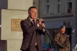 Po tej części programu, organizatorzy - burmistrz Środy Śl. i przewodniczący Rady Miejskiej, zaprosili uczestników do Domu Kultury na żołnierski poczęstunek oraz projekcję filmu "Wyklęty".