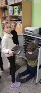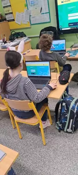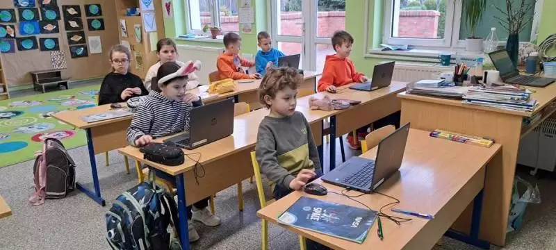 Klasa 2a wraz ze swoją wychowawczynią panią Katarzyną Skrzypek wykonała projekt kolorowanki nawiązujący do zadania konkursowego. Ich praca została wyróżniona i zostali laureatami. Jesienią trafiła do nich mobilna pracownia komputerowa, składająca się 16 laptopów wraz z mobilną szafą ładującą oraz interaktywny monitor, umożliwiający prezentowanie wyników pracy.