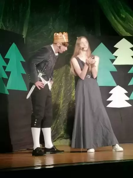 Specjalnie zaproszeni goście obejrzeli najpierw dowcipny spektakl uczniowski zatytułowany „W poszukiwaniu Kopciuszka”, w większości przygotowany podczas nauki zdalnej metodą online. Młodzi aktorzy zagrali w średzkim Domu Kultury tego dnia aż pięciokrotnie- przed południem dla swoich rówieśników, a po południu – dla rodziców, przedstawicieli władz lokalnych oraz przyjaciół szkoły.