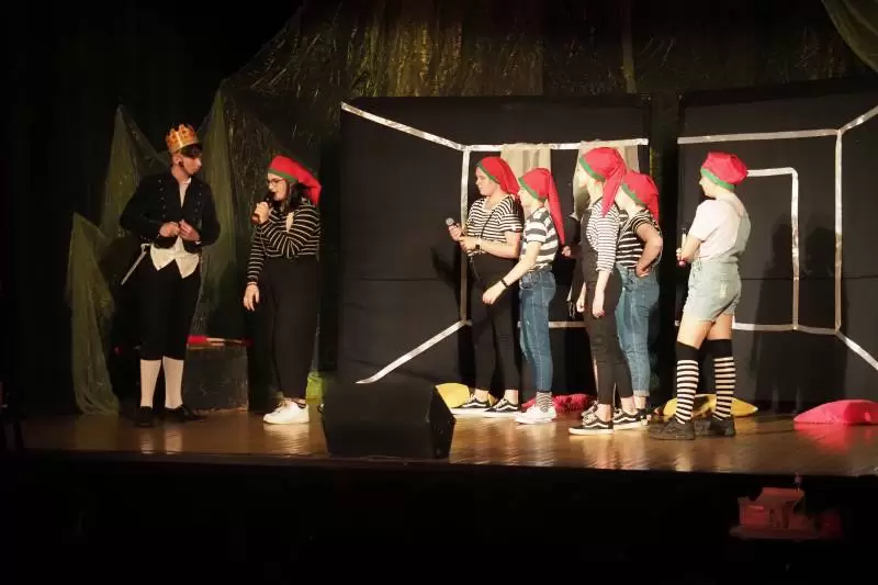 W tytułową postać wcieliła się Emilia Świdzińska, która dała się również poznać jako świetna wokalistka w utworze „Szukaj mnie”. Kopciuszka poszukiwał Książę- Jakub Fedoszczak - dlatego poprosił o pomoc siedmiu krasnoludków ( Michalinę Car, Martę Muntowską, Annę Gołubicz, Aleksandrę Iwaszko, Alicję Samardak, Wiktora Czarneckiego i Julię Wrońską). Plany matrymonialne Księcia nie powiodłyby się, gdyby nie pomysłowa i przedsiębiorcza Wróżka (Kornelia Popławska). W przedstawieniu opartym na motywach baśniowych nie zabrakło Wilka i Czerwonego Kapturka (Piotr Gołąb i Zofia Ziółkowska) oraz Jasia i Małgosi (Janek Marcinkowski i Julia Stefańczyk). Widzowie z pewnością zapamiętali też kreację Kota w butach, zagranego przez Szymona Markowskiego.