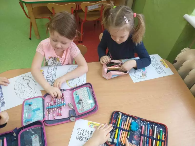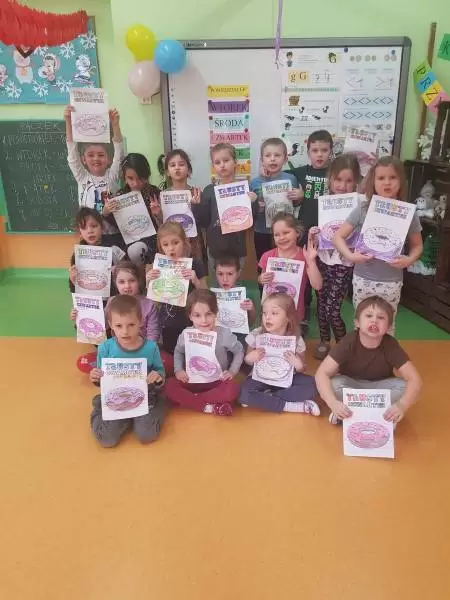 W tym słodkim i przepełnionym uśmiechem dniu dzieci dowiedziały się w jaki sposób przebiega proces pieczenia pączków, wykonały prace plastyczne związane z tematem przewodnim dnia, rozwiązywały zadania i łamigłówki, na koniec same miały możliwość skosztowania tego o czym dowiedziały się podczas zajęć.
