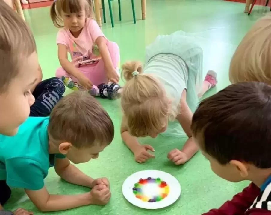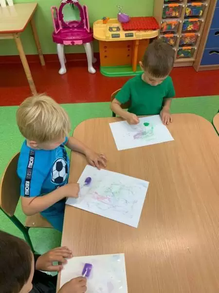 W poniedziałek podejmowano temat wody, dzieci wraz z nauczycielem stworzyły własne bańki oraz obrazki malowane przy użyciu bibuły i wody. We Wtorek przeprowadzono eksperyment z solą, dzieci niecierpliwie czekały na pojawienie się kryształków. Środa była dniem pełnym kolorów w którym dzieci mieszając farby, tworzyły nowe barwy. W czwartek przełamaliśmy lody, dzieci poznały właściwości lodu, a zwieńczeniem dnia były obrazki malowane barwionym lodem.