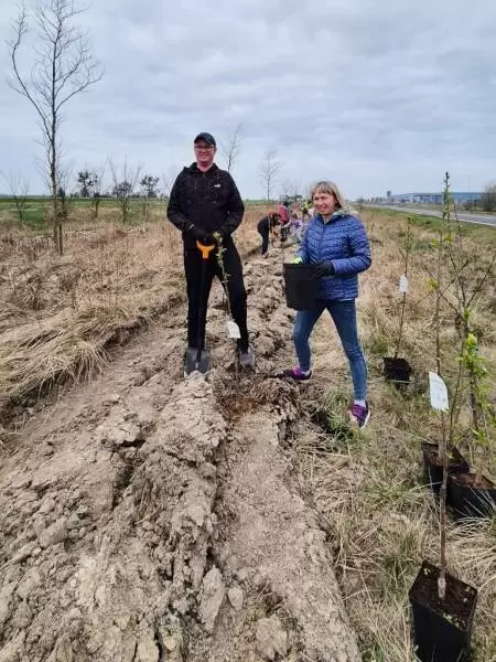 W sadzenie zaangażowani byli przedstawiciele Gminy, radni Rady Miejskiej, pracownicy Średzkiej Komunikacji Publicznej, Green Energy oraz firmy XEOS. Pyszne śniadanie dostarczył dla nich Mariusz Komenda.