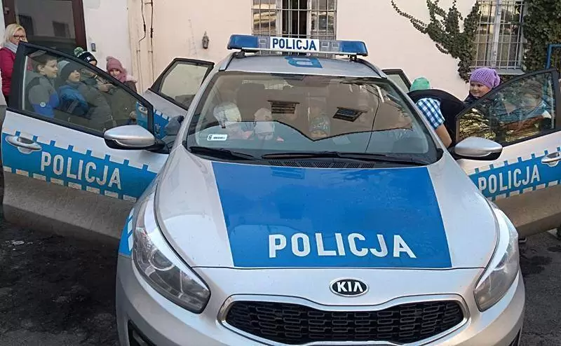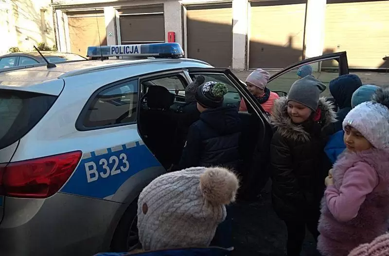 Na koniec dzieci obejrzały radiowóz. Każdy chętny mógł wsiąść do samochodu i poczuć się, jak funkcjonariusz na służbie. Aby wspomnienie wizyty w średzkiej komendzie trwało nieco dłużej, pierwszoklasiści otrzymali pieczątki z wizerunkiem Komisarza Lwa – maskotki dolnośląskiej Policji.
