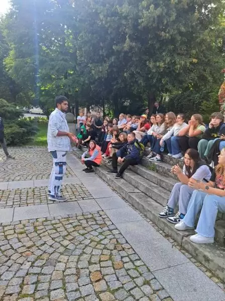 Oprócz zajęć, wolontariusze oprowadzili też uczniów po Dusznikach Zdroju przedstawiając im ich historię i pokazując ciekawe miejsca.