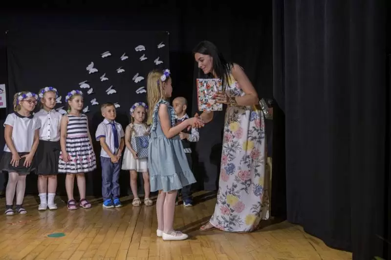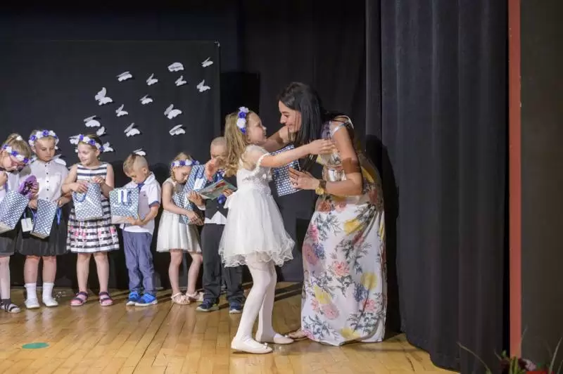 Pięknie recytowały wiersze, śpiewały piosenki, tańczyły do ulubionych piosenek z repertuaru przedszkolnego i składały podziękowania dla wszystkich zgromadzonych gości. Otrzymały upominki, dyplomy i birety. Robiły pamiątkowe zdjęcia i oglądały prezentację upamiętniającą cztery lata wspólnego pobytu w przedszkolu.