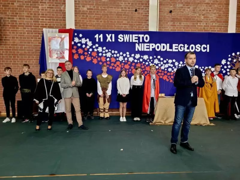 105. rocznicę odzyskania niepodległości uczciliśmy przypominając najważniejsze wydarzenia z historii Polski. W uroczystości uczestniczyła cała społeczność szkolna, rodzice i zaproszeni goście: z-ca burmistrza p. Marcin Nowakowski, radni: p.Wioleta Borkowska, p. Stanisław Sendyka, przewodnicząca Rady Szkoły p. Agnieszka Kubas.