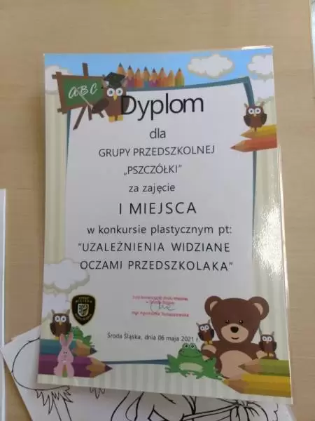 Straż Miejska i Urząd Miejski przy współpracy Gminnej Komisji Rozwiązywania Problemów Alkoholowych oraz Burmistrza Adama Rucińskiego, ogłosili wyniki konkursu plastycznego przeprowadzonego w Przedszkolu Publicznym nr 1 w Środzie Śląskiej pod tytułem „Uzależnienia widziane oczami przedszkolaków”.