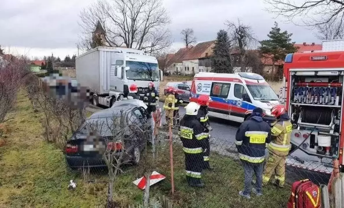W Cesarzowicach zderzyła się osobówka z ciężarówką