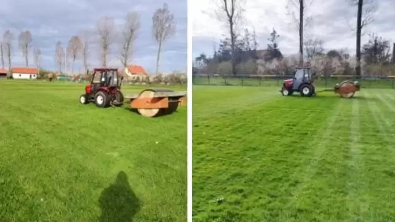 Pod koniec marca br. spółka OSiR wykonała zabieg wałowania murawy boiska sportowego w Bukówku.