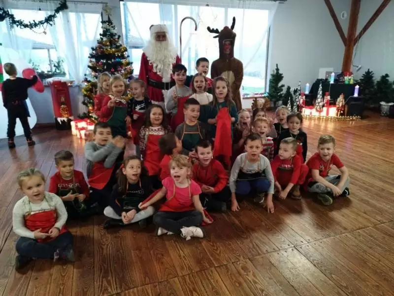 Dwie najstarsze grupy z Przedszkola w Ciechowie, wybrały się na wycieczkę w poszukiwaniu Mikołaja. Na miejscu przywitały nas Elfy, Renifery i oczywiście ON, niezastąpiony Mikołaj! Pięknie wystrojona sala, wszechobecna czerwień i świąteczna muzyka, od razu wprawiła nas w świąteczny nastrój.