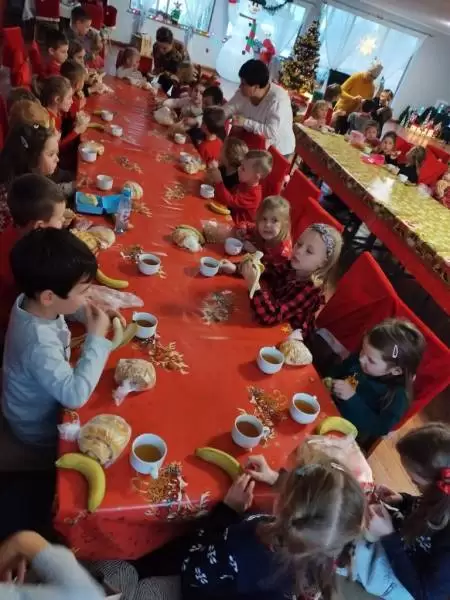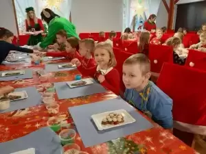 W przerwie dzieci popijały świąteczną herbatkę, a w tle słychać było świąteczne przeboje!