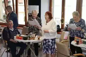 „Pisanki – Śpiewanki” – pod takim hasłem odbyło się wielkanocne biesiadowanie podopiecznych Dziennego Domu Senior + w Środzie Śląskiej z udziałem Klubu Senior+ z Udanina. Seniorzy wspólnie tworzyli kolorowane pisanki wielkanocne, wesoło przy tym śpiewając.