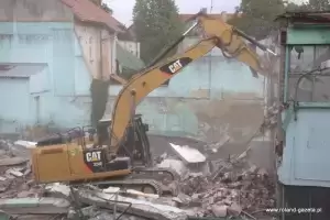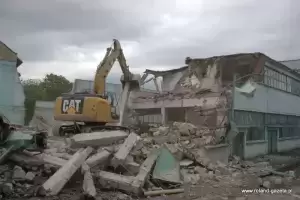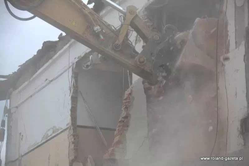 - Firma będzie budowała pawilon handlowy sieci Lidl oraz jeszcze jeden w miejscu przylegającym do boisk sportowych. Natomiast w części najbliżej ul. Wrocławskiej, w dawnym biurowcu będzie wykonany również pawilon handlowy, ale w mniejszej skali z zachowaniem architektury zewnętrznej, bo takie są wymagania konserwatora zabytków - informuje kierownik robót. - Wyburzamy obiekty przemysłowe. To był zakład uszczelnień technicznych jak mieszkańcy Środy Śląskiej wiedzą i te wszystkie obiekty, która spełniały funkcje przemysłowe teraz są likwidowane, z wyjątkiem budynku biurowego. Kolejno trzeba te budynki rozszyfrować tak jak były budowane ich konstrukcje i odpowiednio do procesu budowania burzyć, czyli osłabiać miejsca węzłowe, żeby konstrukcja mogła się osłabiać w sposób zaplanowany i bezpieczny - wyjaśnia P. Kirziejonek. - Problemem jest wysokość niektórych obiektów. Te, które są niższe zostaną wyburzone w pierwszej kolejności. Do obiektu wysokiego zbudujemy rampę najazdową z pozyskanego materiału z hal, by następnie koparka wzniosła się na wysokość 6-7 metrów, aby sięgnąć elementów najwyższych . Natomiast hale przy obiektach sportowych będziemy burzyć metodą tradycyjną, przy użyciu koparki. Kłopotliwą sytuacją jest fakt, że w jedynym z obiektów są złącza średniego napięcia i tę cześć hali musimy rozebrać ręcznie, aby nie spowodować jakiegoś uszkodzenia w pomieszczeniu, w którym złącze się znajduje. Jest to dodatkowe utrudnienie polegające na pracy ręcznej. Wszystkie pozostałe budynki, zgodnie z naszym doświadczeniem firmowym będziemy kolejno kłaść i później rozdzielać materiały nadające się do recyklingu, czyli np. złom oraz gruz betonowy, który będziemy kruszyć na kruszywa. Zostaną one wykorzystane do budowy placów parkingowych, natomiast gruz ceglany do stabilizacji gruntu placów i dróg dojazdowych na tym terenie - wyjaśnia kierownik P. Kirziejonek.