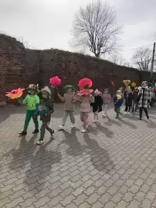 I właśnie to piękne, wiosenne słoneczko prowadziło całą społeczność edukacji wczesnoszkolnej w kolorowym korowodzie do szkoły, gdzie zakończyła się dzisiejsza parada.