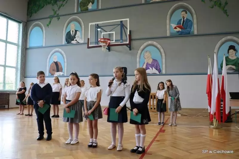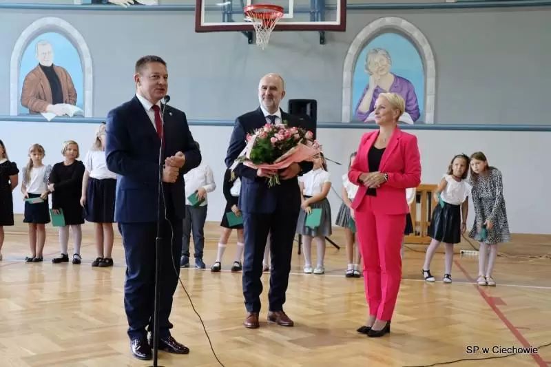W Szkole Podstawowej w Ciechowie uczniów powitała odnowiona sala gimnastyczna oraz piękny mural na jednej ze ścian frontowych przedstawiający wizerunki 7 polskich noblistów, których imię nosi placówka. Jego autorką jest Agnieszka Walaszczyk, absolwentka SP w Ciechowie. Burmistrz Ruciński oprócz tradycyjnych życzeń dla uczniów i nauczycieli, złożył w towarzystwie dyrektora ZOPO Krzysztofa Perygi gratulacje dla dyrektor szkoły Moniki Heby-Wierzbickiej, która objęła stanowisko na kolejną kadencję.