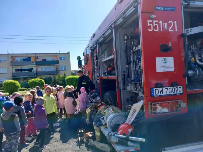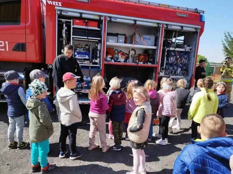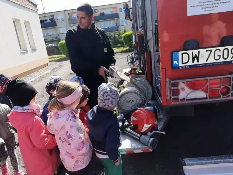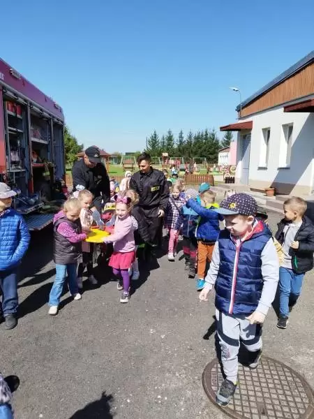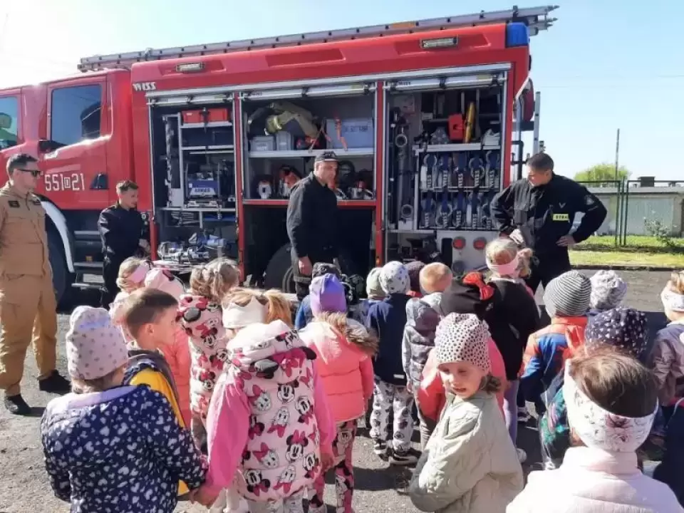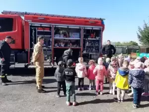 Przedszkolaki z Publicznego Przedszkola w Ciechowie przywitały wyjątkowych gości – strażaków z Komendy Powiatowej Państwowej Straży Pożarnej w Środzie Śląskiej.