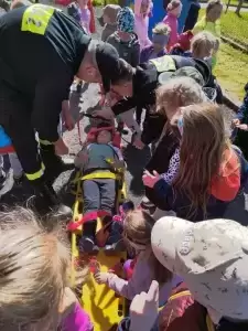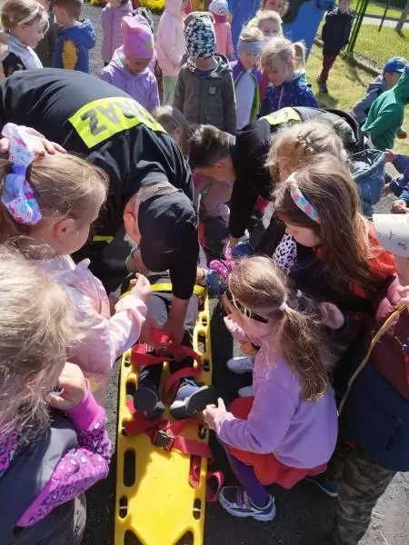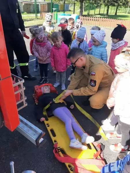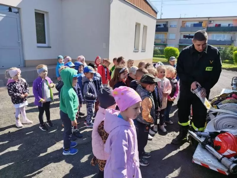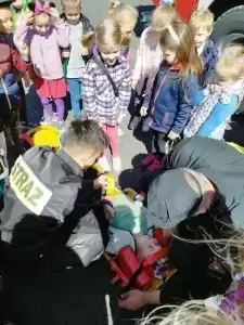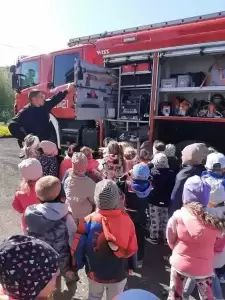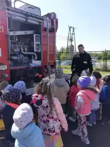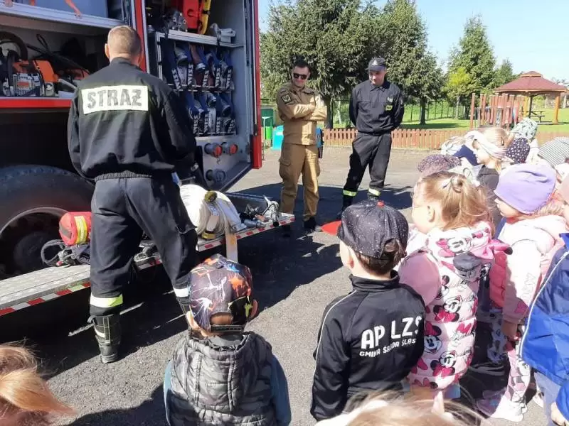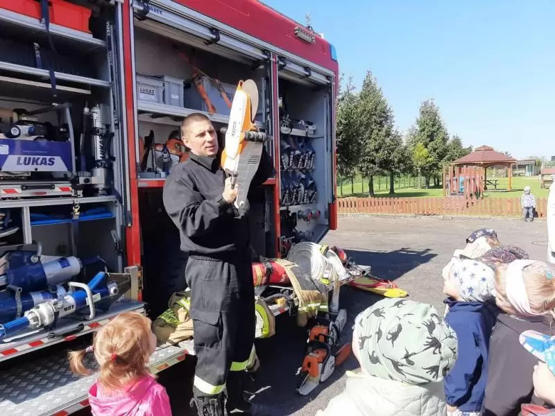 W trakcie spotkania strażacy zapoznali dzieci z ciekawostkami związanymi z ich zawodem, zachowaniem bezpieczeństwa w czasie burzy czy wypadku. Dzieci dowiedziały się, kiedy można wzywać straż pożarną oraz przypomniały sobie wszystkie numery alarmowe. Dowiedziały się także, że strażacy wzywani są nie tylko do gaszenia pożarów ale też do wypadków na drogach.