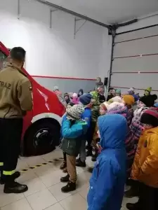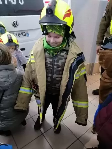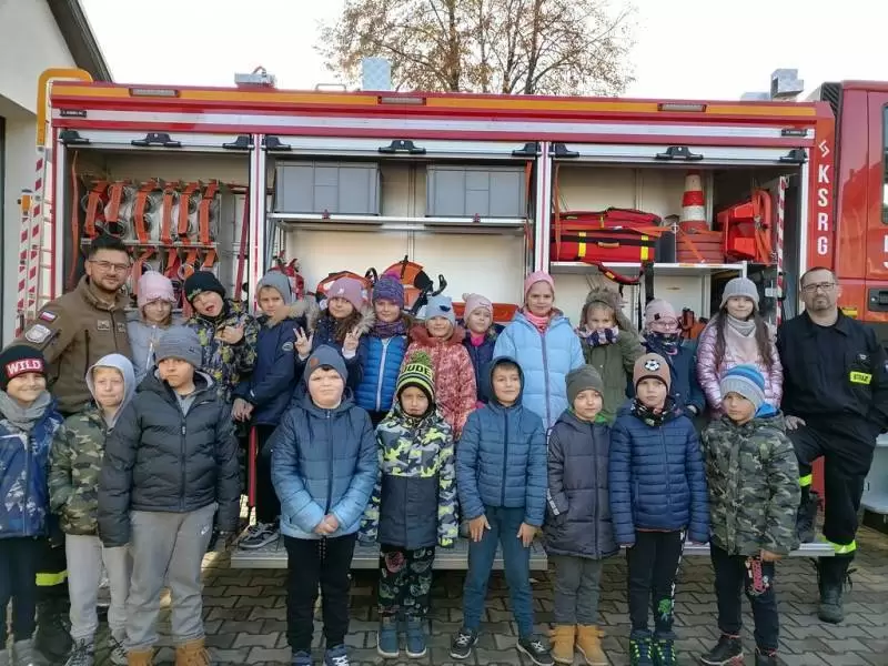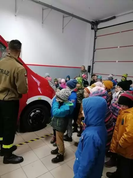 Dzieci dowiedziały się także, w jakich sytuacjach wzywa się straż pożarną, i że strażacy nie tylko gaszą pożary, ale również są wzywani do wypadków drogowych czy usuwania gniazd szerszeni i os. Najmłodsi uczniowie nie dali się zaskoczyć prowadzącym, gdyż świetnie pamiętały, że numer do straży pożarnej to 998 i alarmowy 112. Strażacy pokazali dzieciom sprzęt do udzielania pierwszej pomocy oraz nowo zakupiony wóz strażacki – „karetkę”. Każde dziecko miało możliwość założenia białego hełmu strażackiego. Okazało się, że jest bardzo ciężki, ale ciekawość wzięła górę. Dużą atrakcją było dla dzieci wejście do środka wozu strażackiego.