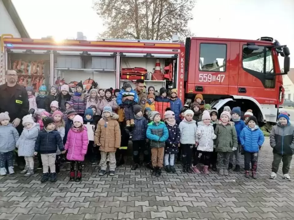 W poniedziałek, 28 listopada, strażnicę w Rakoszycach odwiedziła grupa dzieci z klas O-III i Punktu Przedszkolnego Szkoły Podstawowej im. Sybiraków w Rakoszycach. Dzięki życzliwości strażaków mogły obejrzeć prawdziwy wóz strażacki, strój strażaka oraz niezbędne w tym zawodzie narzędzia. Wysłuchały również informacji o trudnej, odpowiedzialnej i niebezpiecznej pracy strażaka oraz akcjach ratowniczo-gaśniczych.
