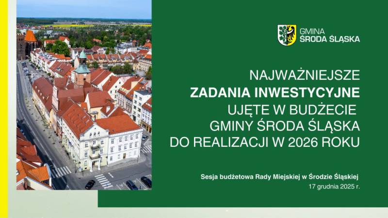 W środę 17 grudnia odbyła się ostatnia w tym roku sesja Rady Miejskiej w Środzie Śląskiej. Najważniejszym punktem obrad były sprawy finansowe. Radni jednogłośnie przyjęli budżet Gminy na 2026 rok oraz uchwalili Wieloletnią Prognozę Finansową na lata 2026-2041.