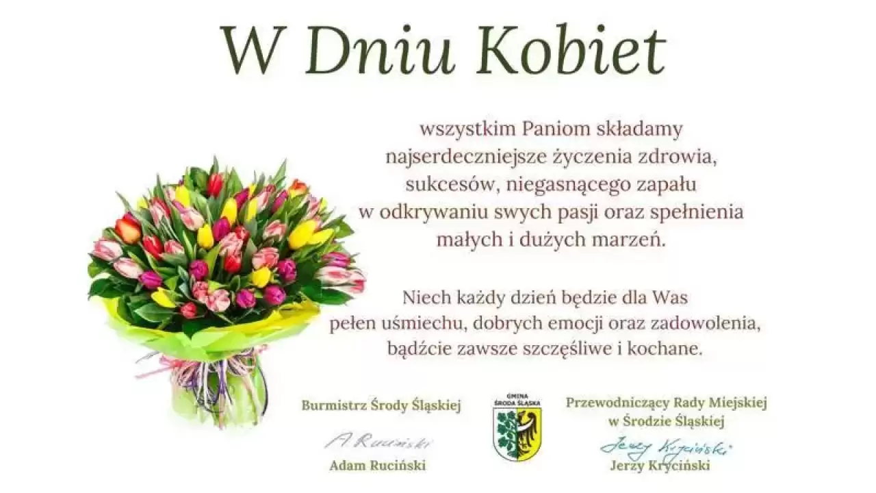 Wszystkim Paniom życzenia składają Burmistrz Adam Ruciński i Przewodniczący RM Jerzy Kryciński