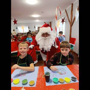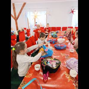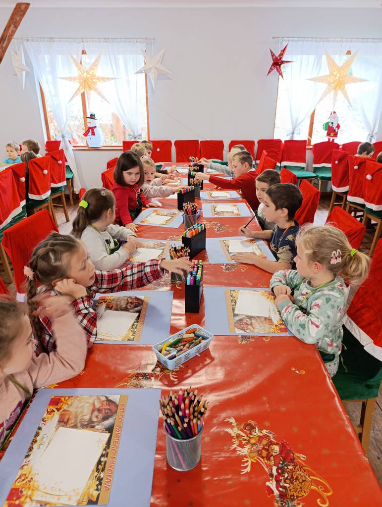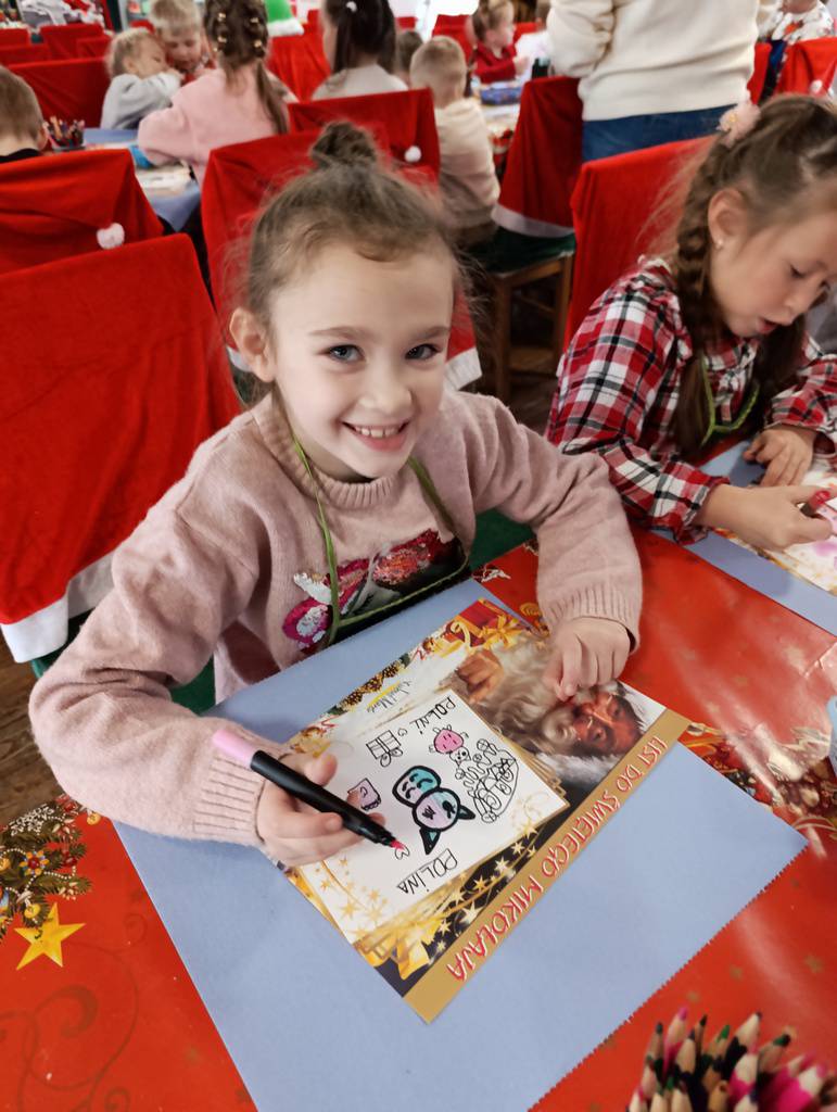 Dekorowana była także świąteczna torebka, do której dzieci spakowały swoje wszystkie wytwory. Podczas spotkania był czas na wspólne zdjęcia, na napisanie listu do Mikołaja oraz wspólny taniec i ćwiczenia ruchowe!
